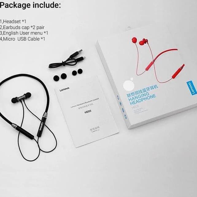 Bluetooth earphones lenovo lenovo he05 bluetooth earphone. Built with the precision designed housing and internal nano coating reinforcement technology lenovo he05 bluetooth sport headphones prevent sweat and water. The awesome stereo earphones not only equipped with the fastest and stablest bt 5 0 chip but also built in the premium cvc noise canceling microphones which allow you an ultimate music pleasure. We provide 100 genuine product with cash on delivery and upto 36 months emi facilities.
