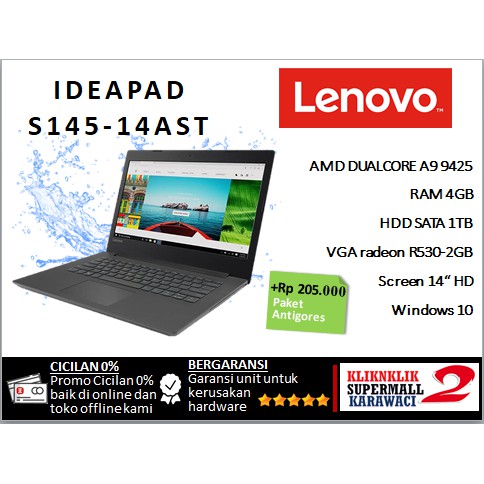 Lenovo ideapad s145 14ast 58id laptop grafis murah bertenaga amd a9 9425 lenovo indonesia tampaknya berupaya mengukuhkan posisinya di pasar notebook indonesia dengan meluncurkan berbagai lini laptop terbaru salah satunya adalah segmen entry level melalui seri ideapad s145 lini produk ini tersedia dalam beberapa varian salah satunya adalah lenovo ideapad s145 14ast 58id yang ditenagai.